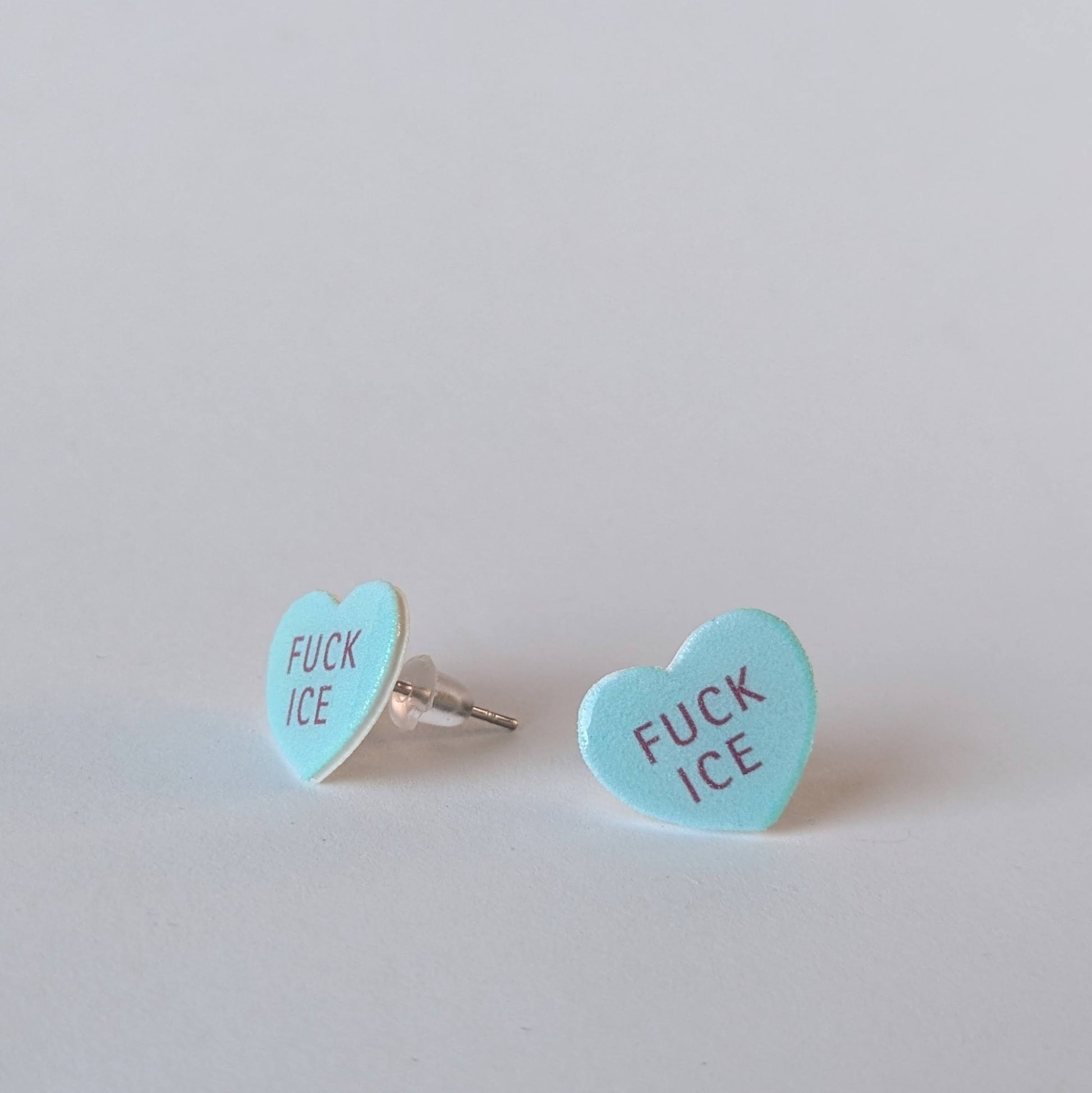 Conversation Heart "FUCK ICE" earrings in orange or blue